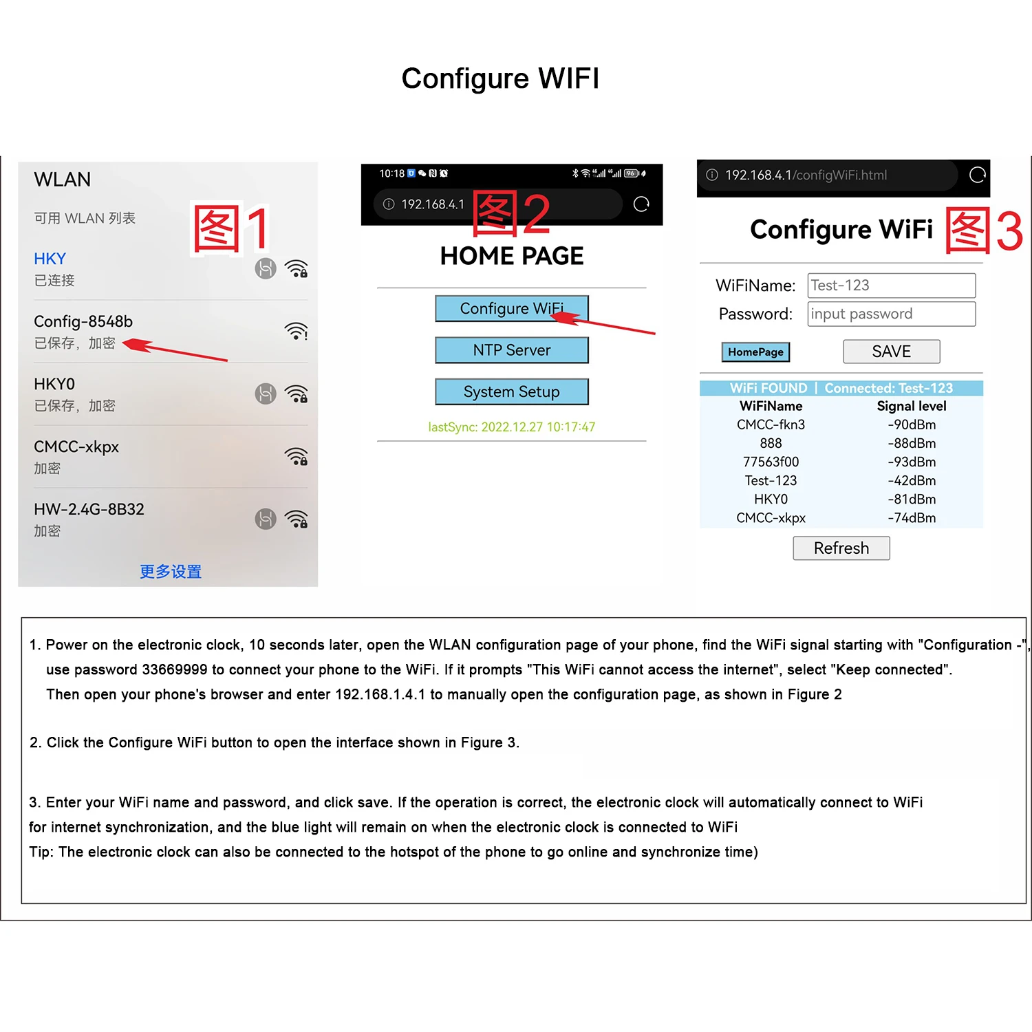 2. Added the time zone function. Set the time zone by parameter EE, and WIFI network timing is available all over the world.