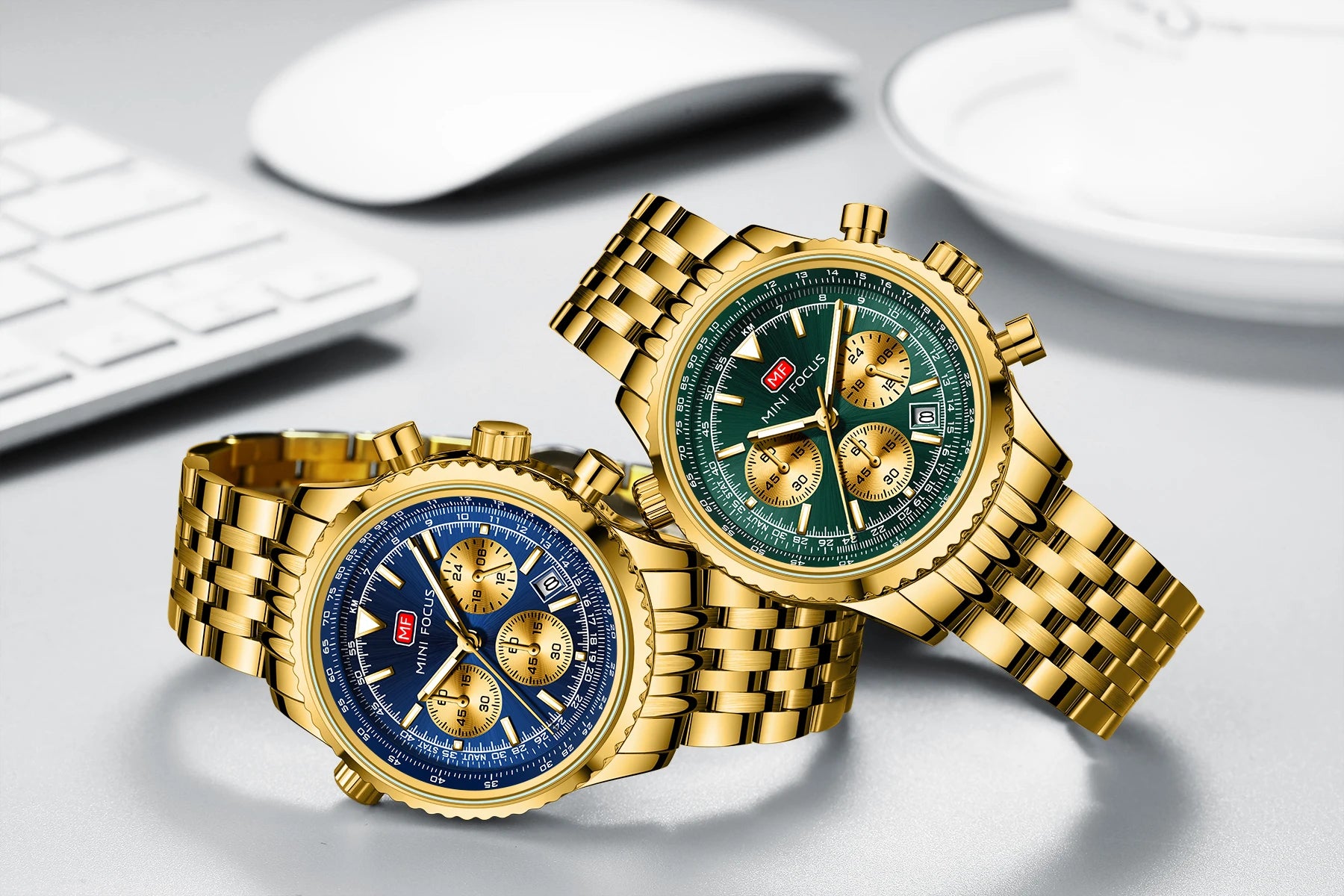 2024 MINI FOCUS Newest Model MF0463G Luxury Watch Gold Stainless Steel Band Luminous Waterproof Men Quartz Watches Reloj