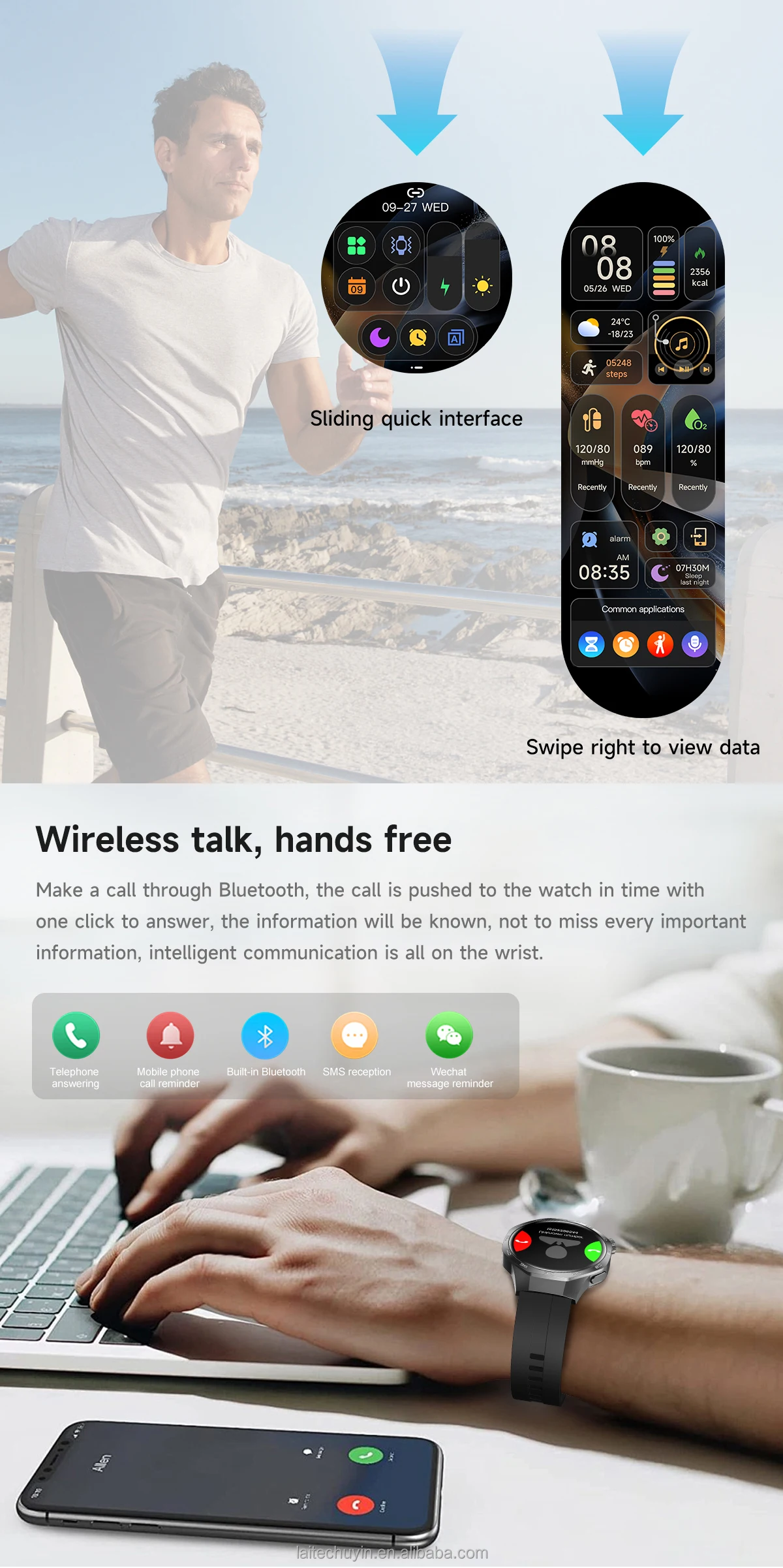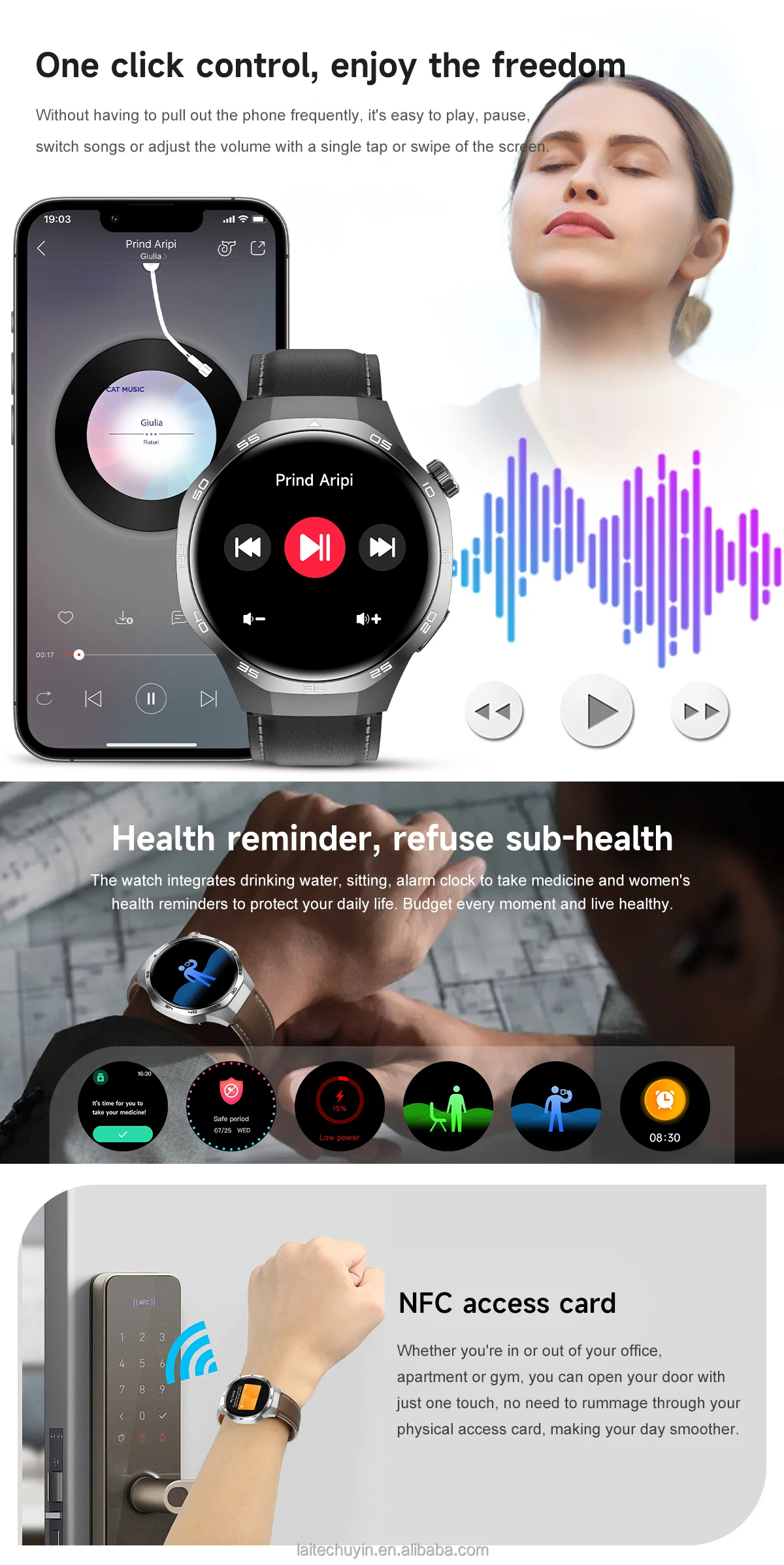 Compass, phone (contacts, call records, dial keypad, call Settings, SOS), message push, exercise, step counting, sleep detection, music, heart rate, blood pressure, blood oxygen, body temperature, women's health detection, medicine reminder, water reminder... |