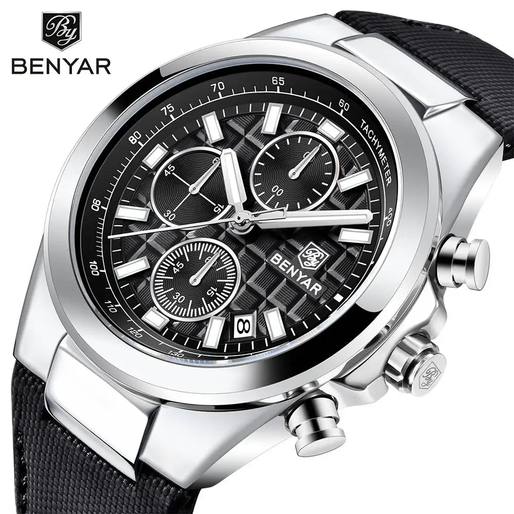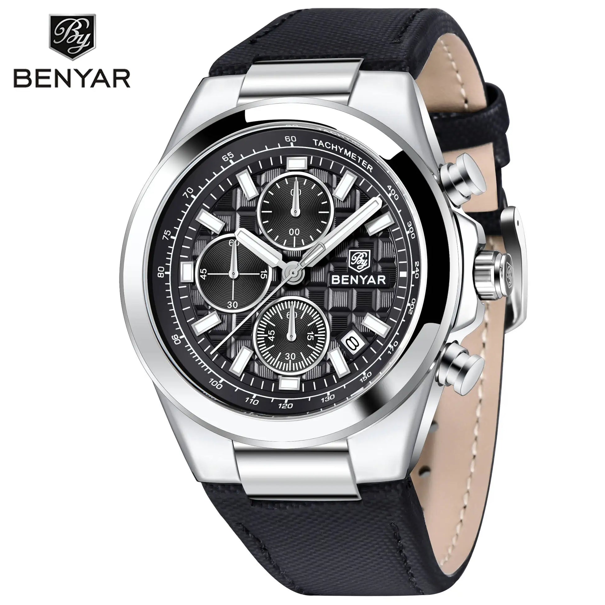 BENYAR Brand Men's 5206M Watches Top Luxury Watch for Men Chronograph Quartz Wristwatch Clock Waterproof Leather Reloj Hombr