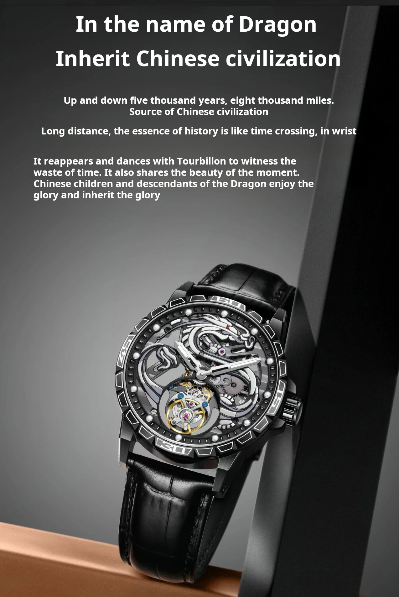 China Zodiac Dragon Flying Tourbillon Movement Manual-winding Watch Waterproof Men's Tourbillon Skeleton Mechanical Watches