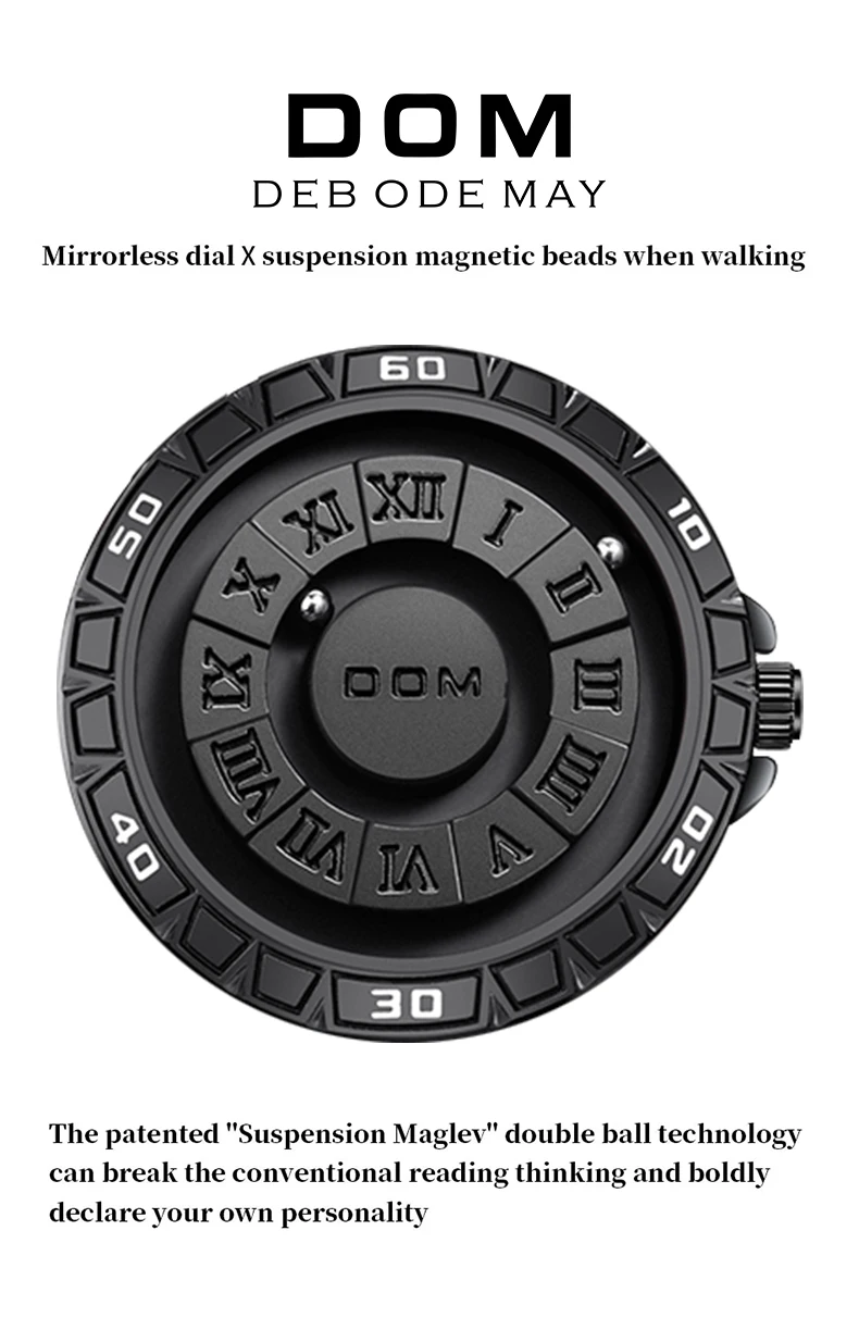 DOM 1726 Classics New Design Magnetic Ball Concept Men Fashion Cool Trend Minimalist Waterproof Leather Quartz Watches
