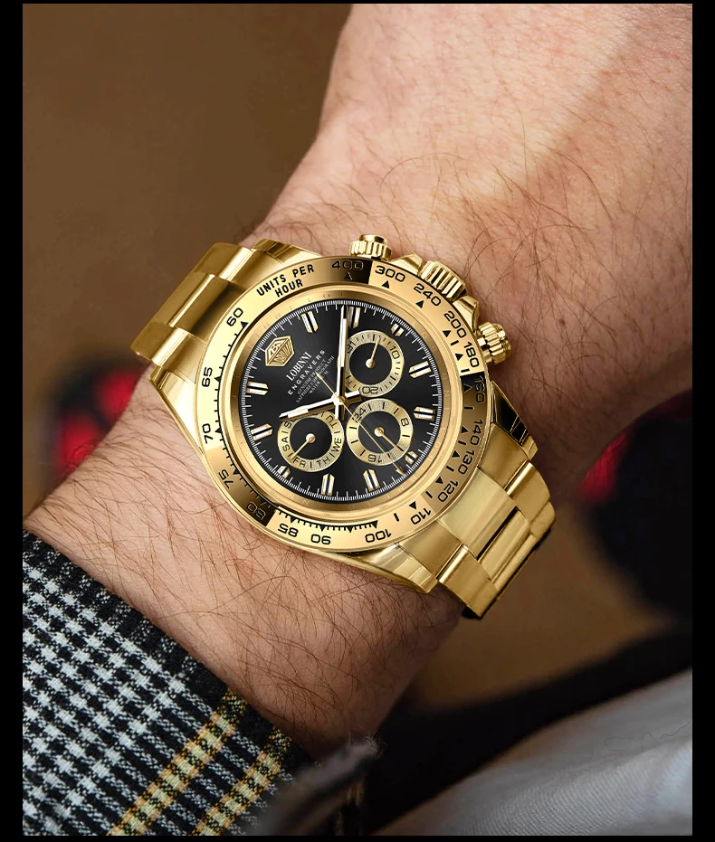 LOBINNI Luxury Brand Stainless Steel Fully Automatic Mechanical Watch Gold Color Men Watches