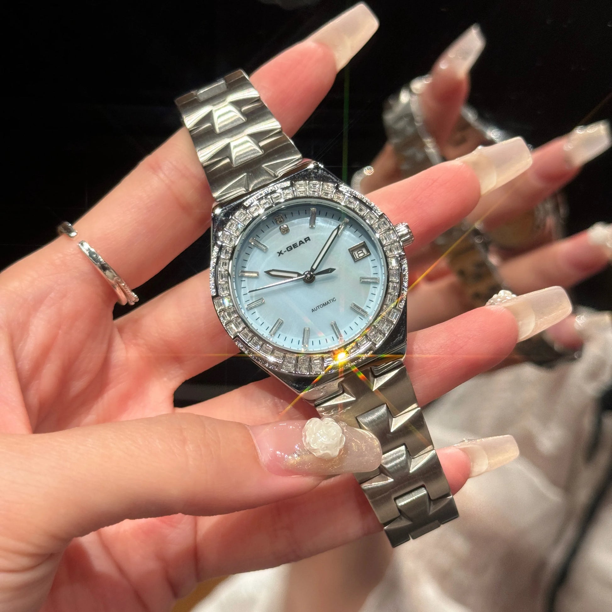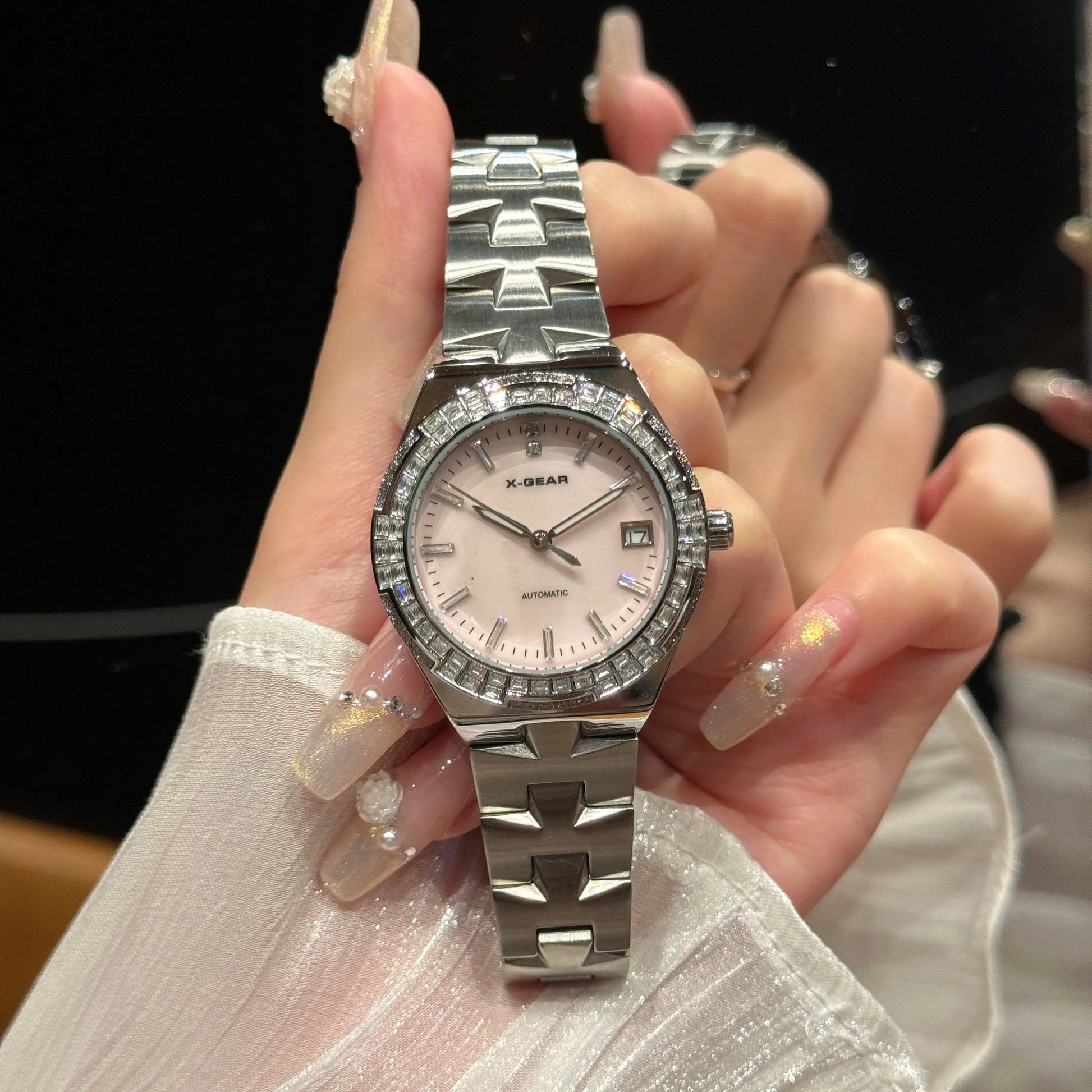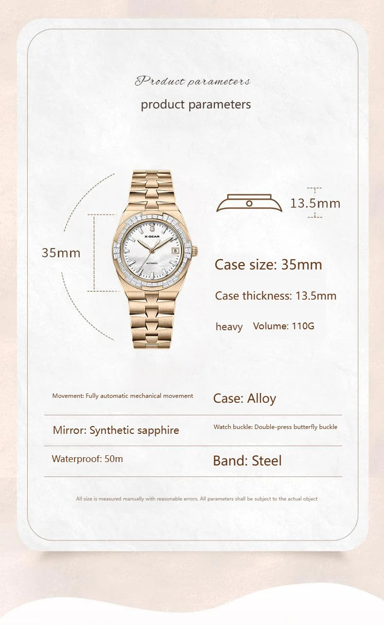 Luxury automatic mechanical watch for women; waterproof, elegant and fashionable round watch as a gift for girlfriend.