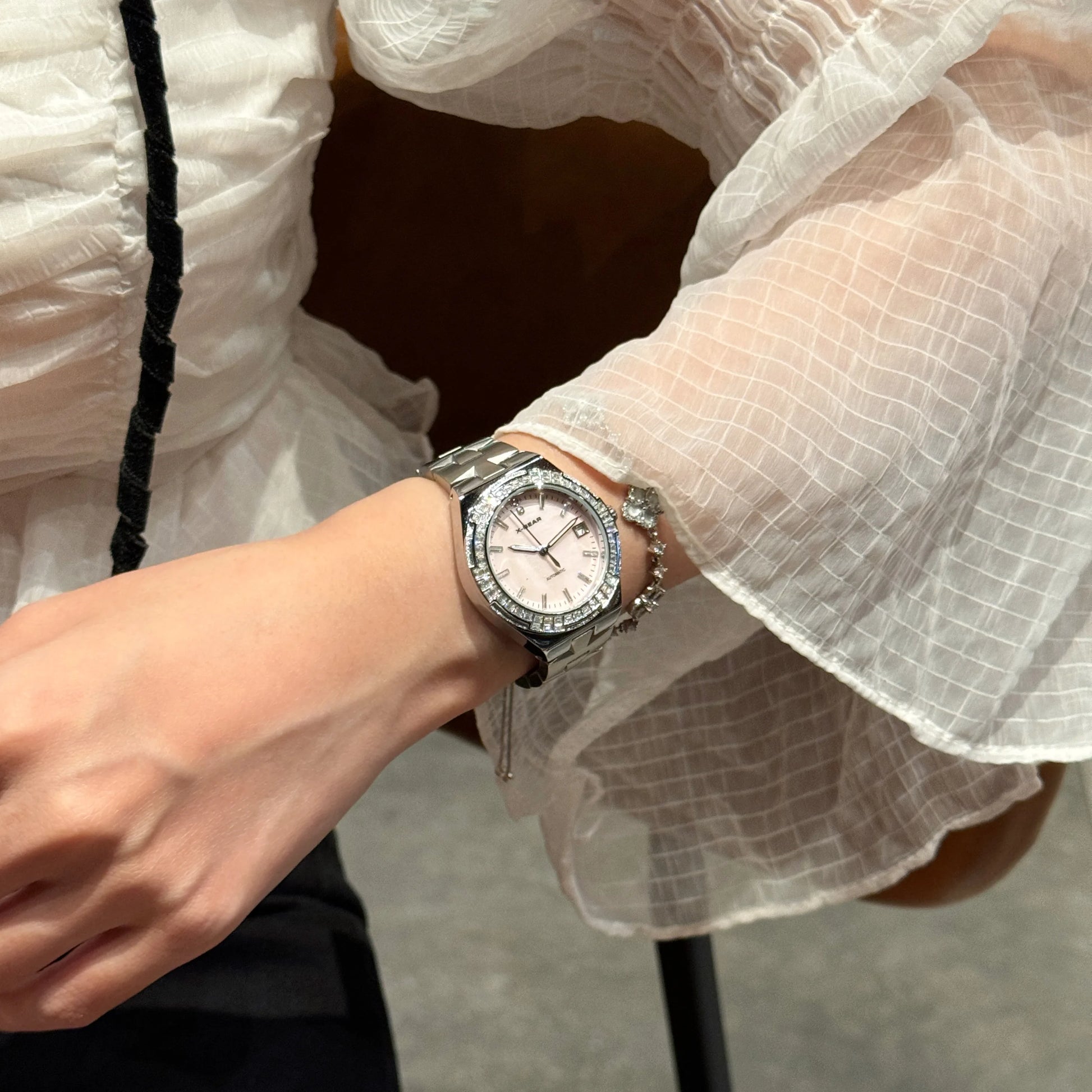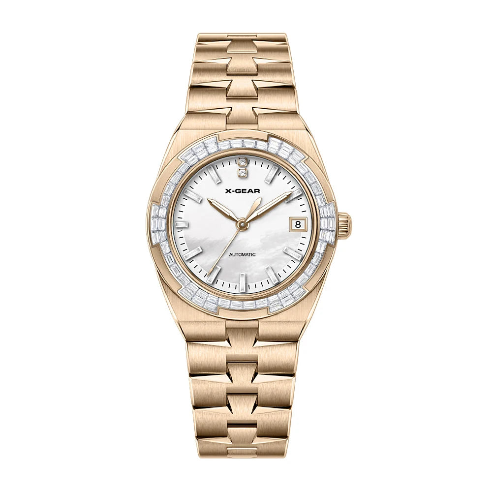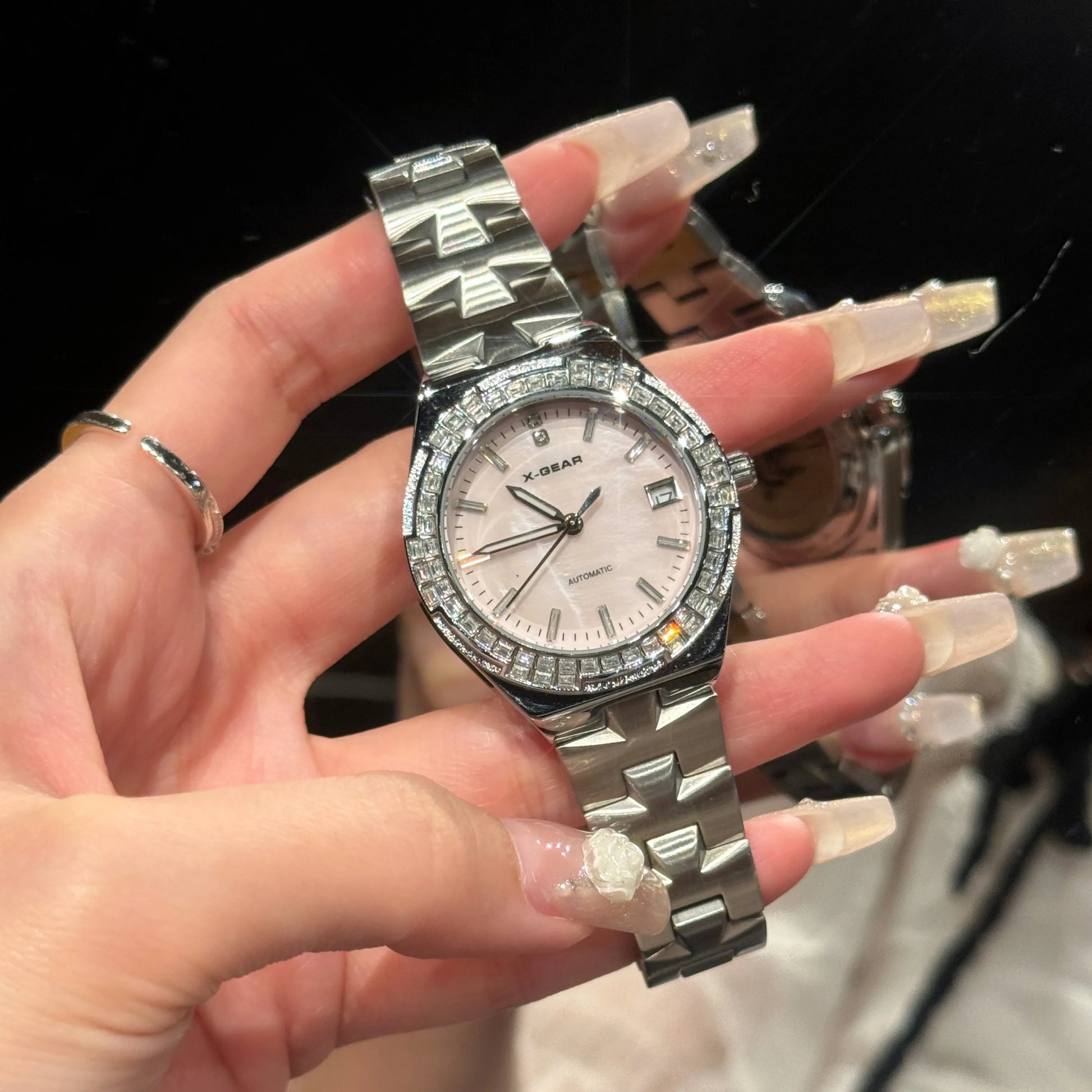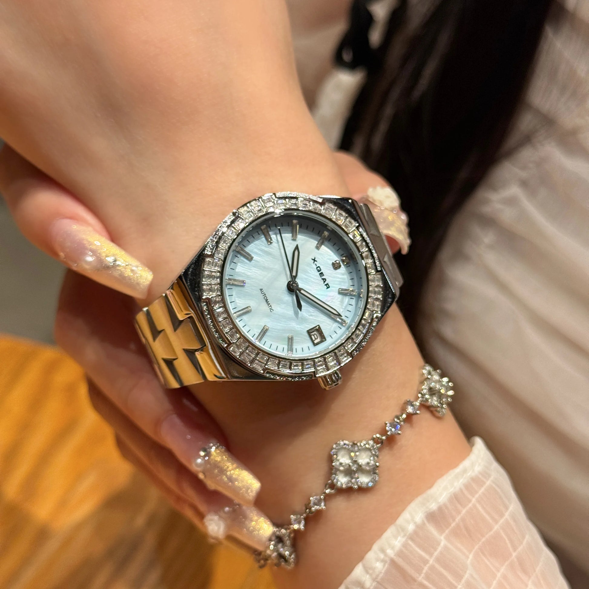 Luxury automatic mechanical watch for women; waterproof, elegant and fashionable round watch as a gift for girlfriend.