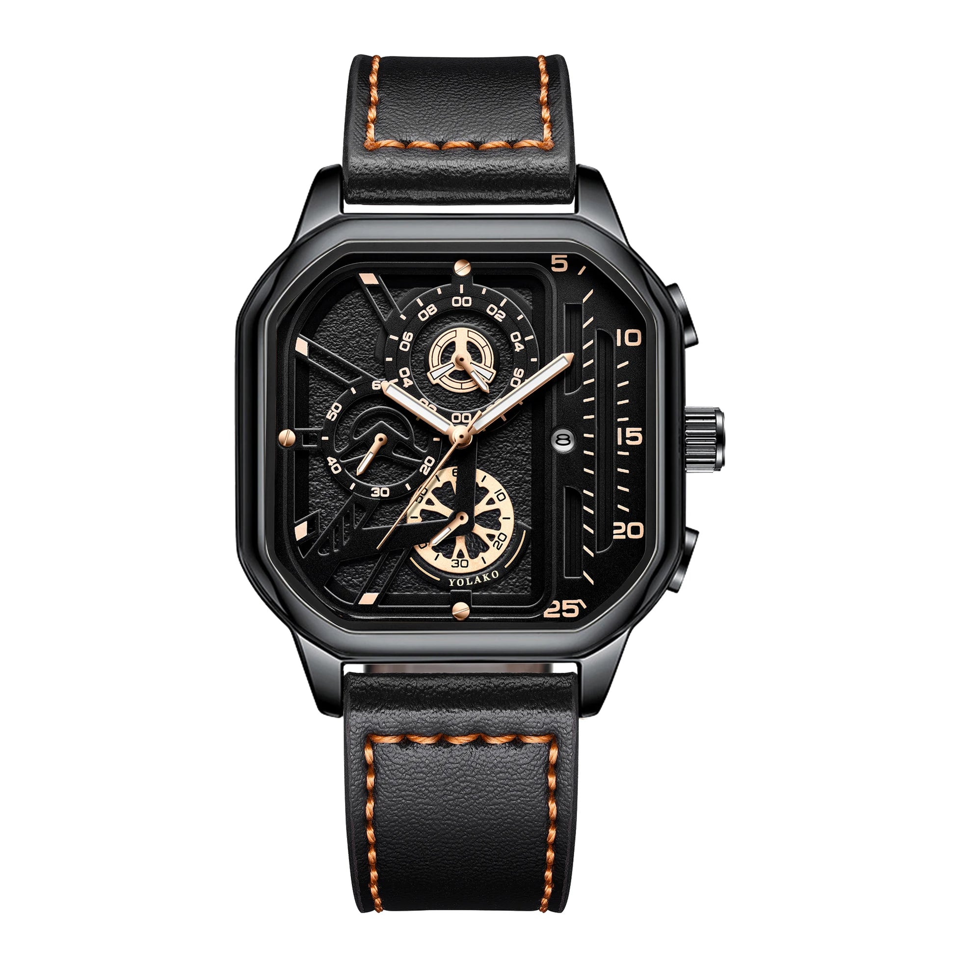 Luxury Big Dial Men Square Watch Casual PU Leather Strap Men Sports Watches