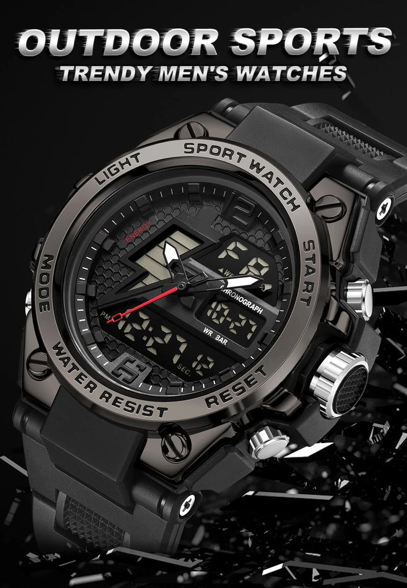 Men's Watches Sports Outdoor Waterproof Wrist Watch Tactical Date Multi Function Large Face LED Alarm Stopwatch for Men