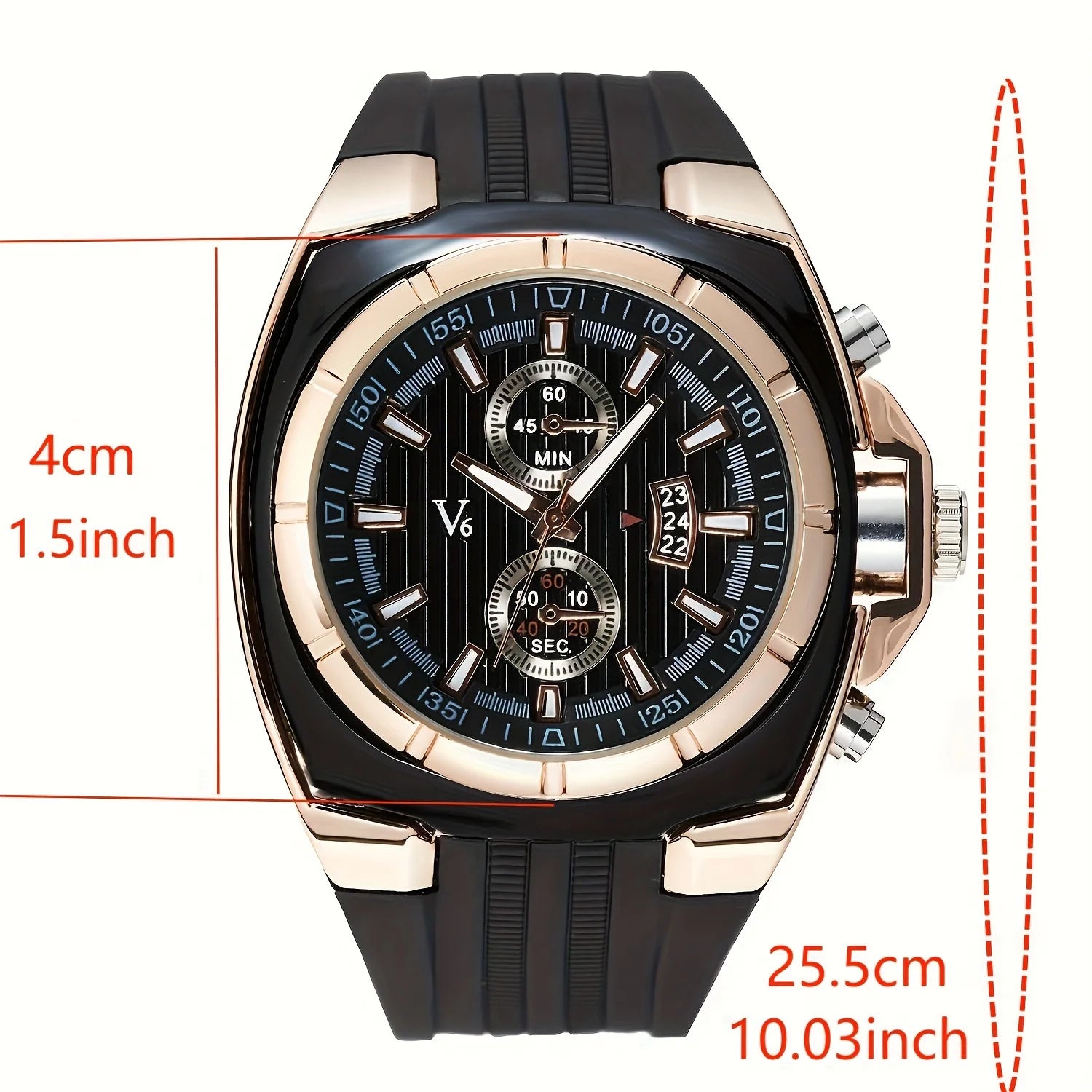 New silicone fashionable outdoor sports watch for men's three eye calendar multifunctional large dial quartz men's watch