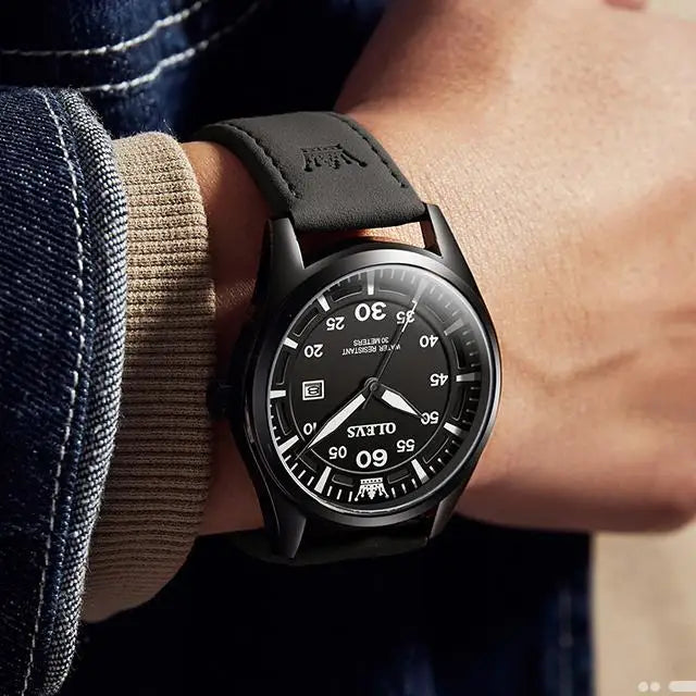 OLEVS 9962 Top Quartz Watch Men Genuine Leather Strap Waterproof Luminous Calendar Men's Watches Casual Sports Man Wristwatch