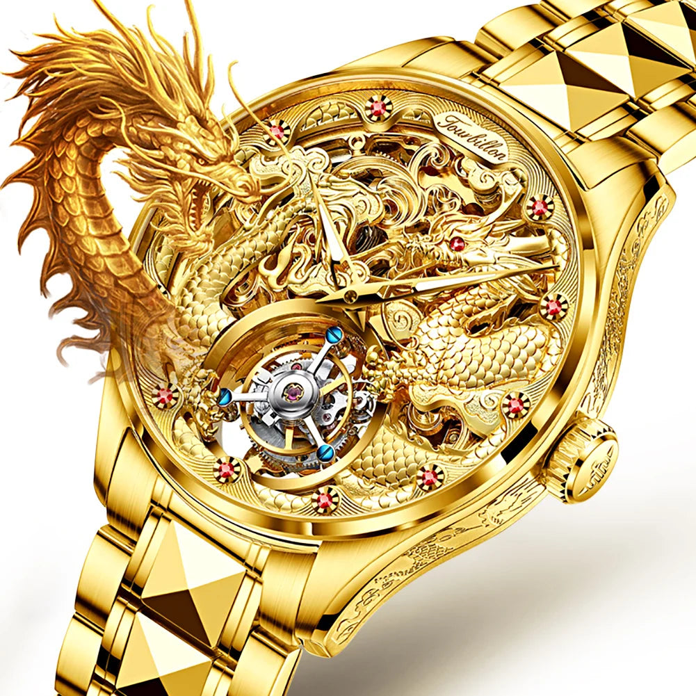 OUPINKE 3176 New Luxury Automatic Mesh Belt Mechanical Watches Waterproof Luminous Hollow Tourbillon Stainless Steel Strap Watch