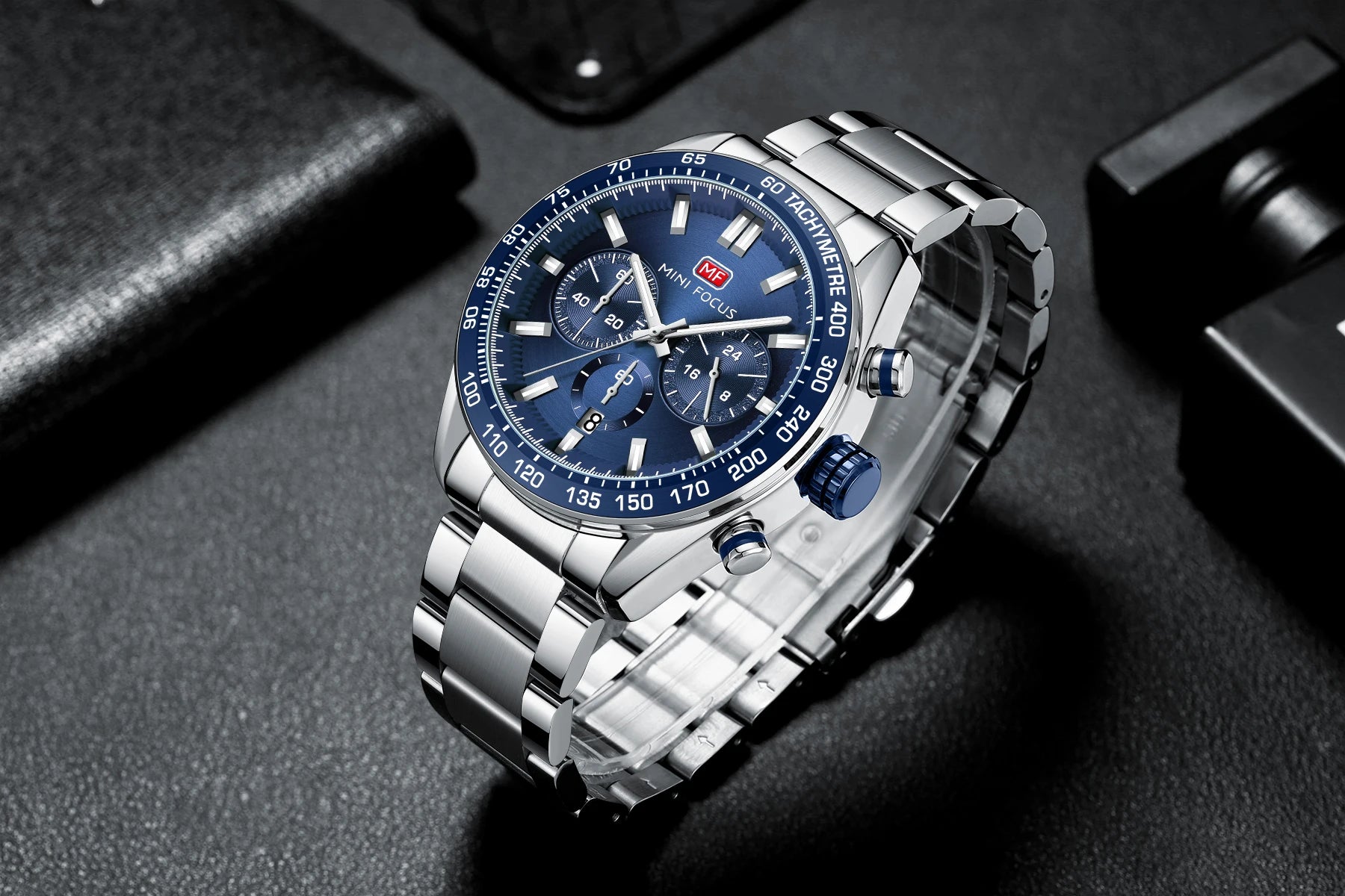 Top-Ranking MINI FOCUS MF0403G Business Watch Men High End Big Dial Waterproof Luminous With Stainless Steel Band Quartz Watches