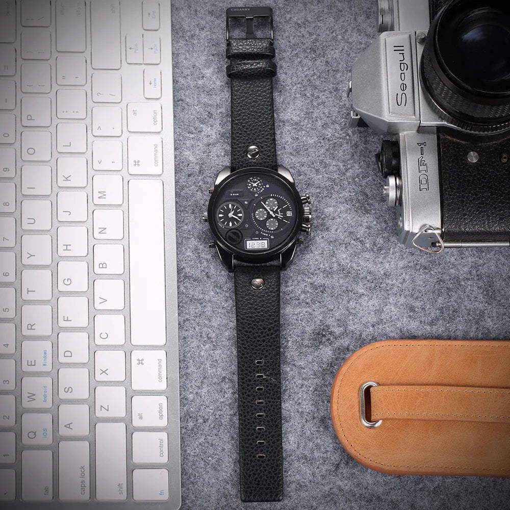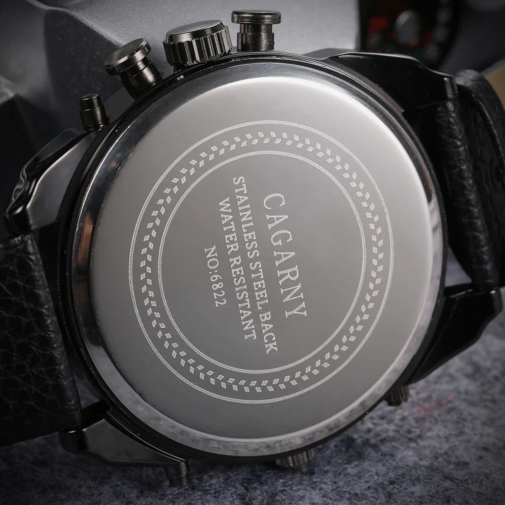 Wristwatch Leather Strap Male Clock Watch Man Luxury Brand Cagarny Men's Quartz Watches Waterproof Date Dual Times Relogio gifts